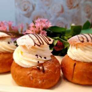 2,50 € Lisa korviKrõbekattega keedutaigna puff. Täidiseks apelsinivõie ja kohupiima-toorjuustuvaht.